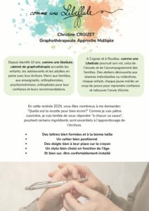 Christine CROIZET – Comme une libellule – Graphothérapeute Charente – Approche multiple